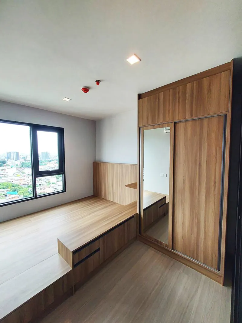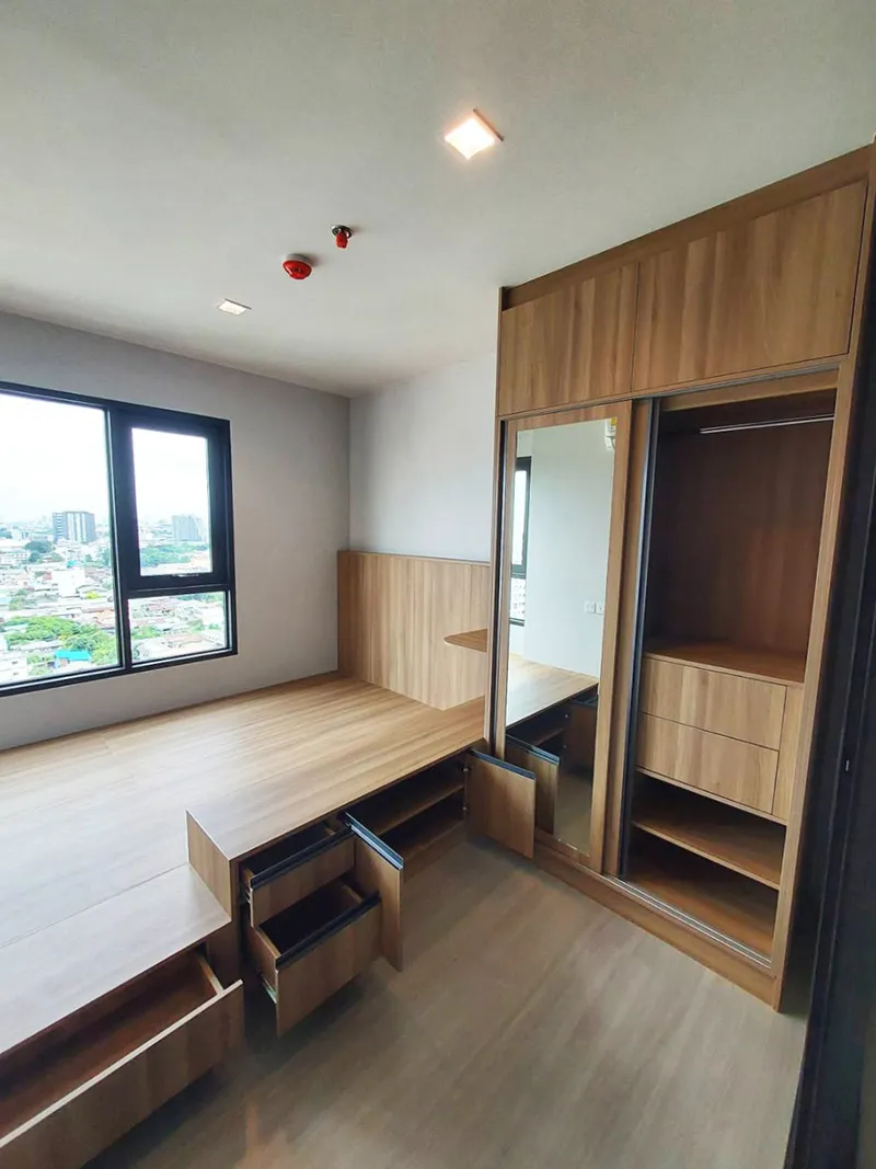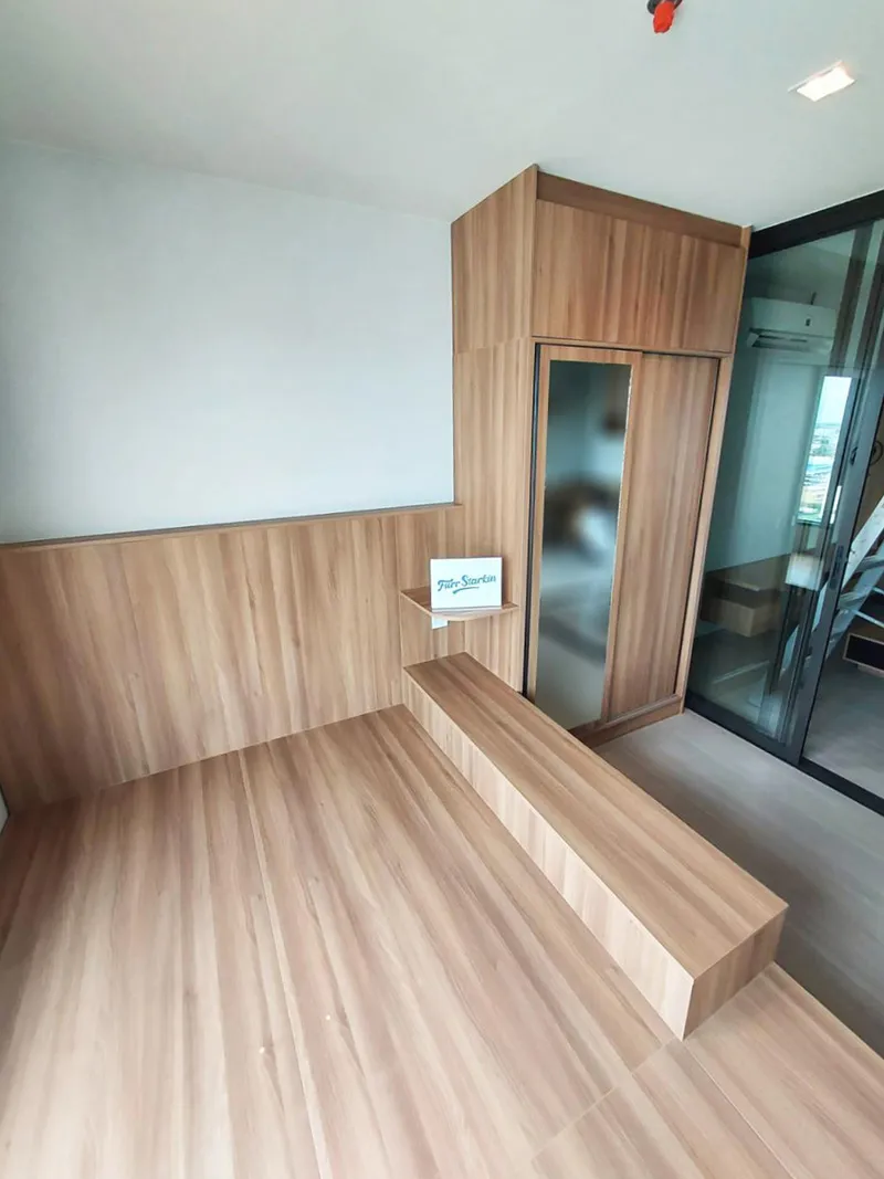 Furr Starkin ได้เนรมิตพื้นที่ “ห้องนอน” ให้มีฟังก์ชันที่จัดเต็มมากกว่าเดิม เนื่องจากเราได้ดีไซน์แฝงตู้เก็บของเข้าไป เพื่อให้สอดรับกับเตียงได้อย่างพอดี โดยเลือกใช้เป็นหน้าบานแบบกดกระเด้ง ถัดมาเป็นตู้เสื้อผ้าหน้าบานสไลด์ พร้อมช่องเก็บของที่ให้จัดเต็ม โดยการเปิด-ปิดของหน้าบาน จะเป็นระบบ Soft Close ทั้งหมด ทำให้ยืดอายุสินค้าให้ใช้งานได้ยาวนานมากยิ่งขึ้น